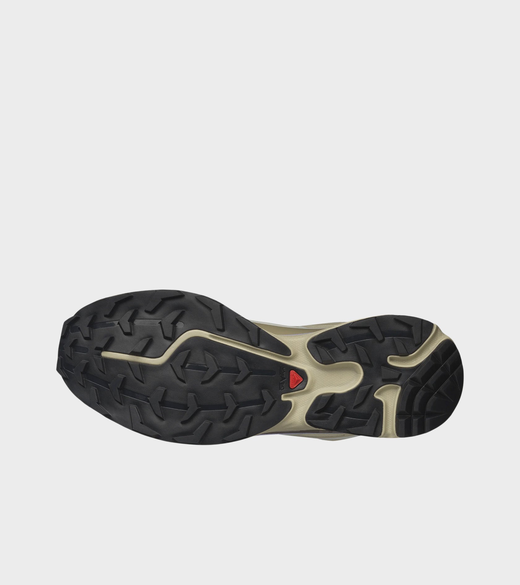 Den populære XT-6 model fra Salomon i lys beige/råhvid med detaljer i sort, grå, mørkebrun og en støvet grøn nuance.