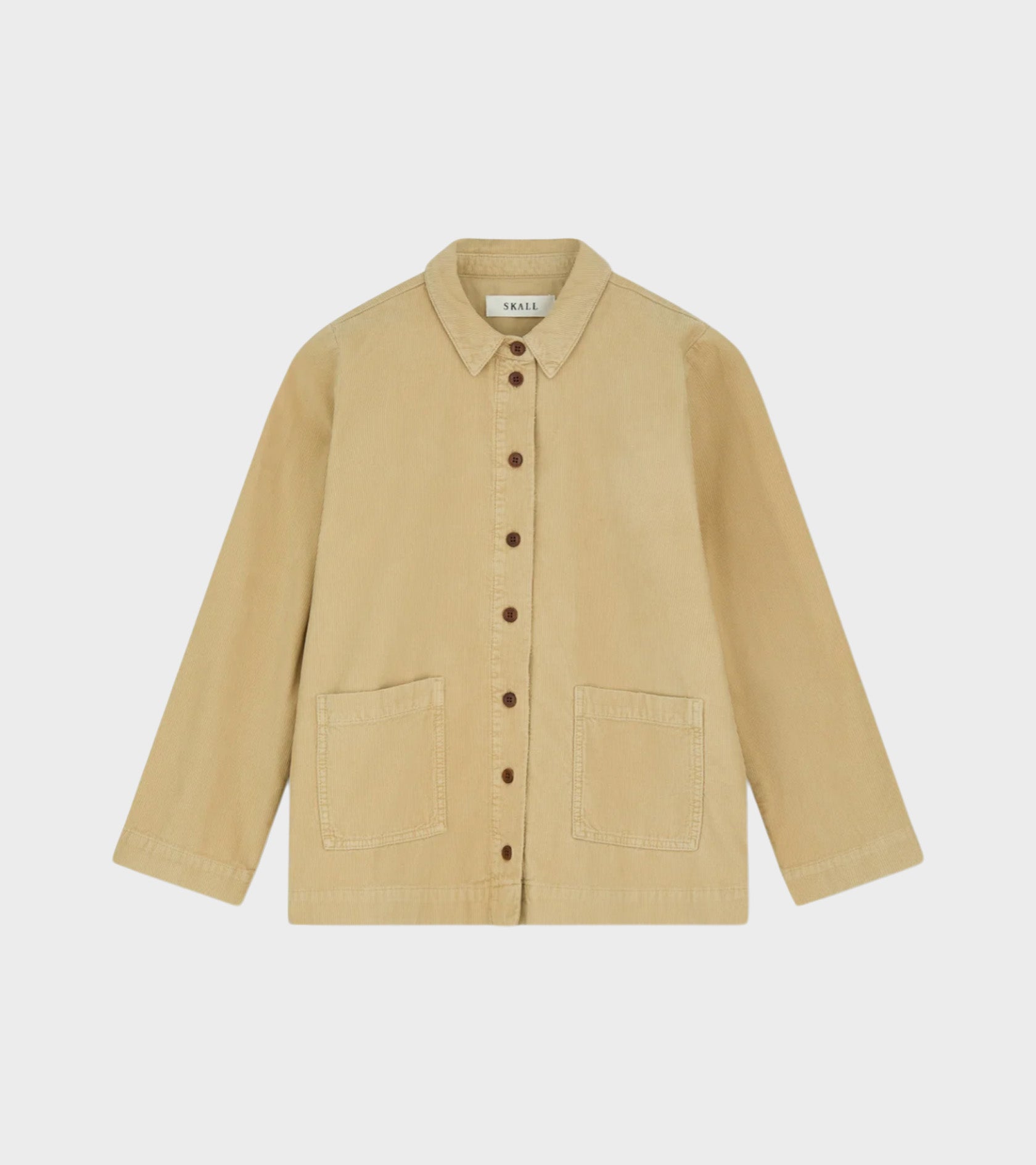 Beige overshirt i økologisk bomuldsfløjl fra Skall Studio.