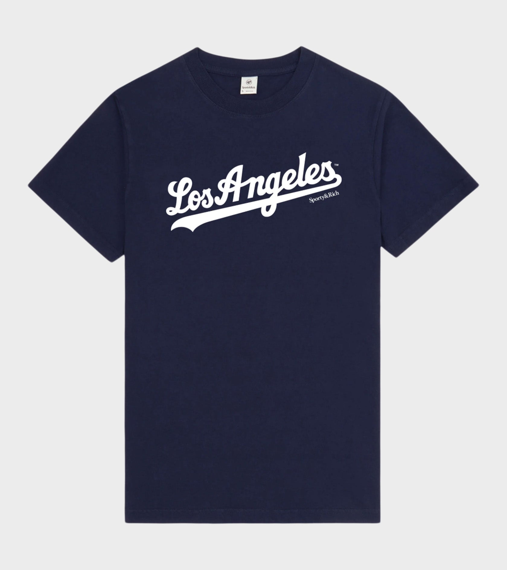 Navy t-shirt med 'Los Angeles' printet på fronten fra Sporty & Rich.