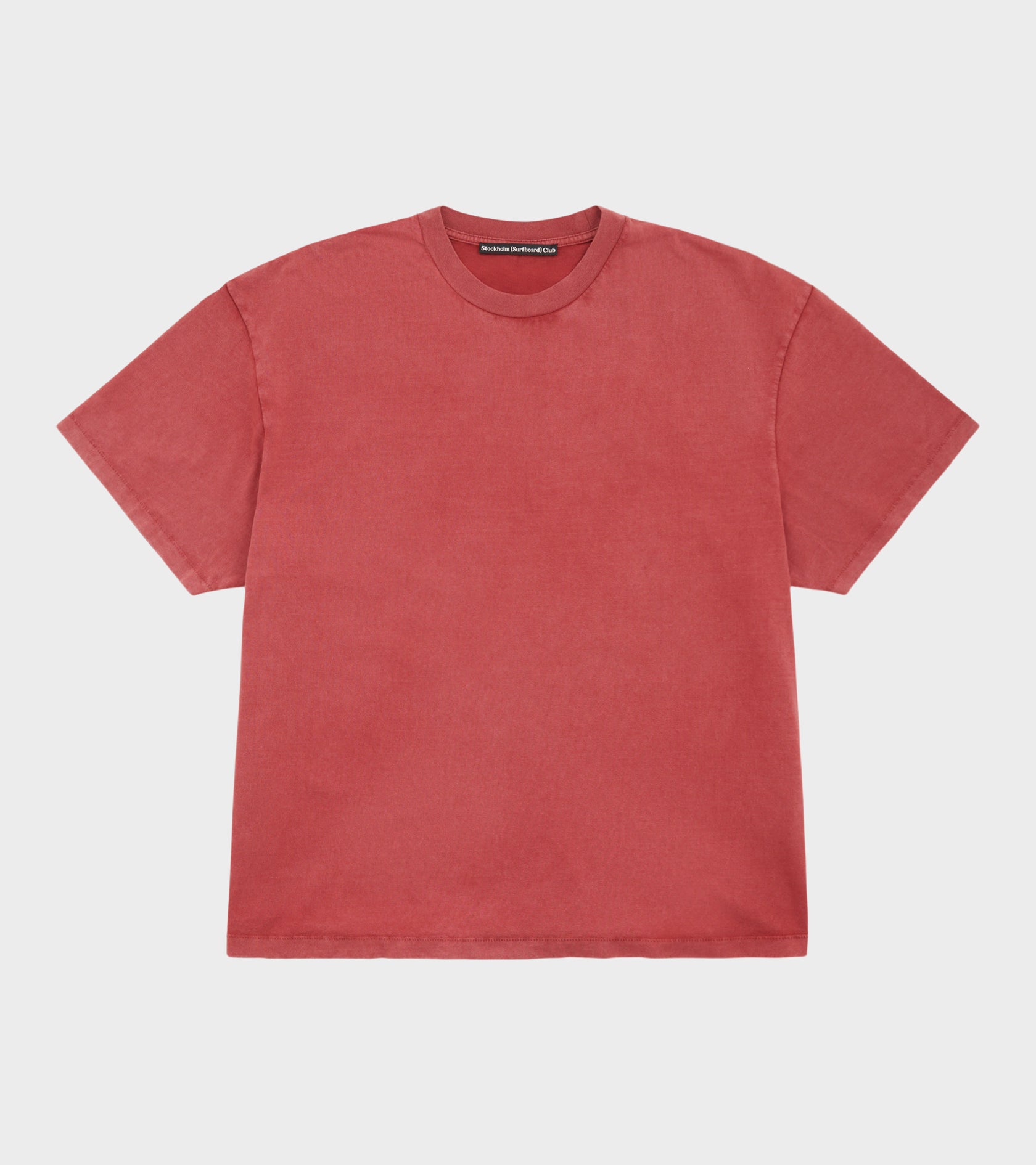 Rød t-shirt i genanvendt bomuld fra Stockholm (Surfboard) Club.