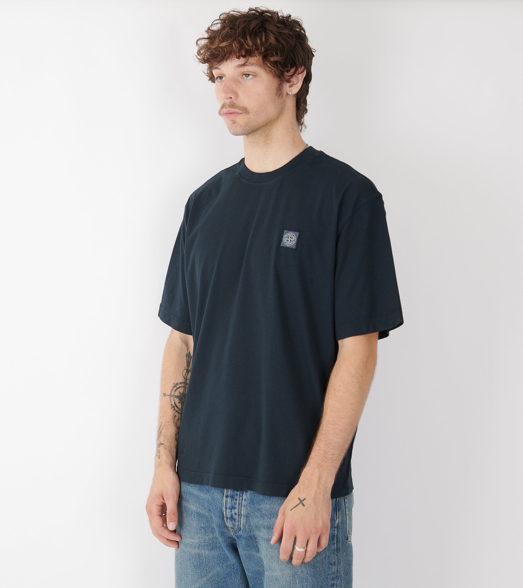 Navy boxy t-shirt med logo ved venstre bryst fra Stone Island.