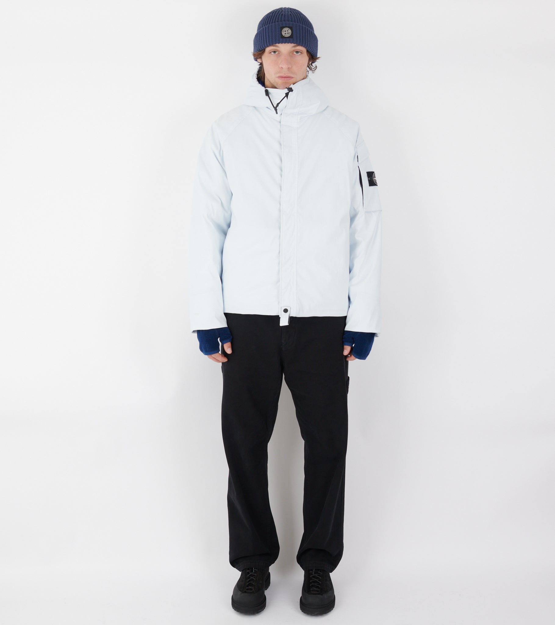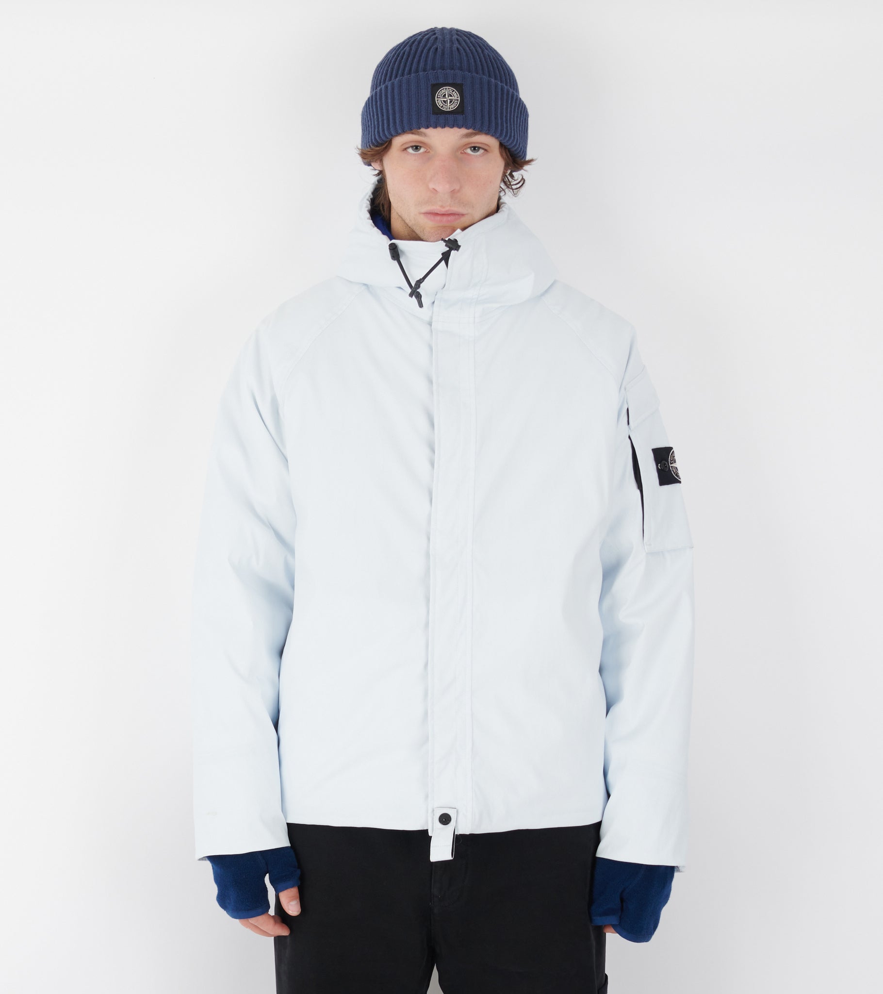 Jakke fra Stone Island. Jakken skifter til en blå nuance når den modtage kulde. På venstre ærme er det ikoniske Stone Patch.
