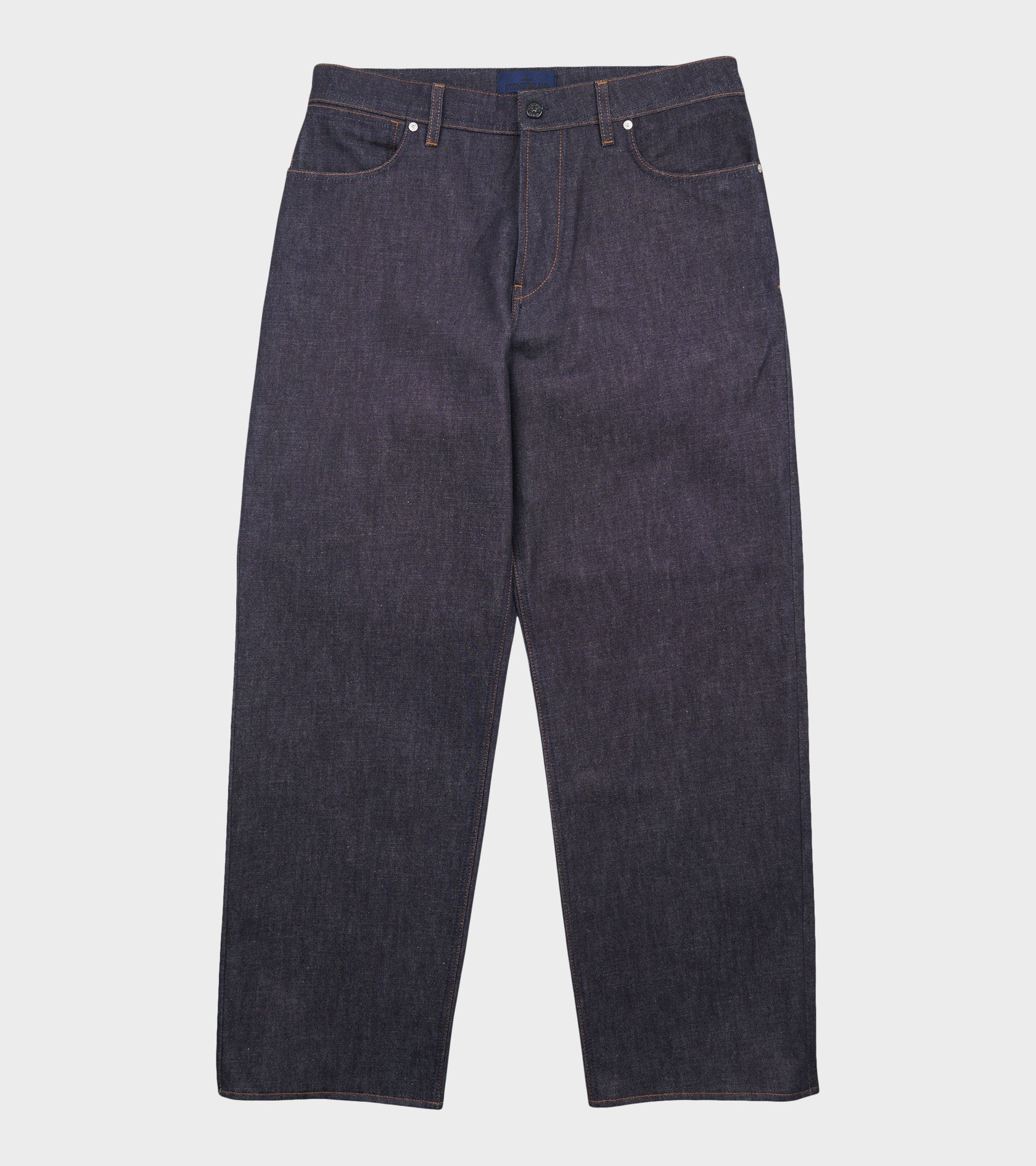 Indigo Denim Raw Loose Jeans One Wash Blue
