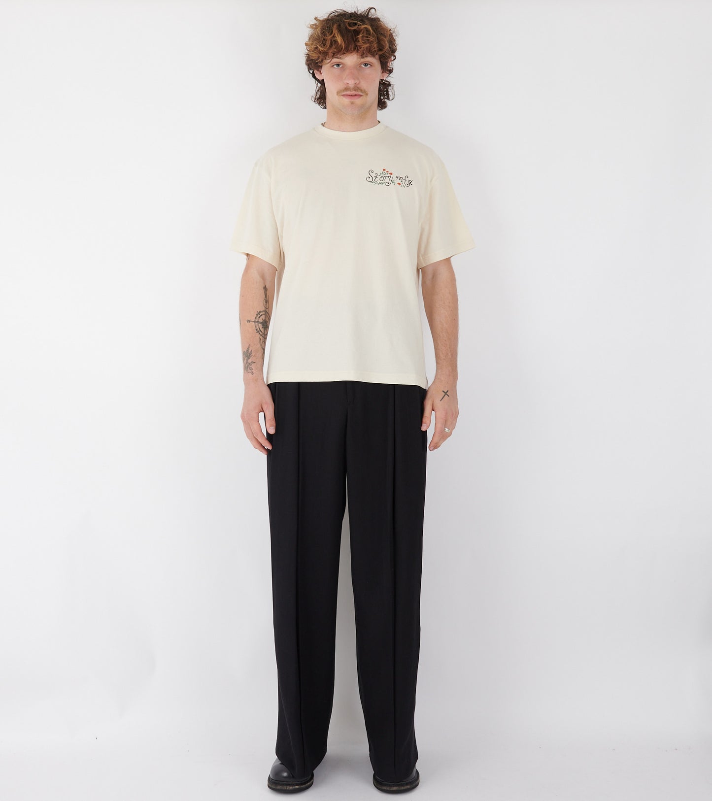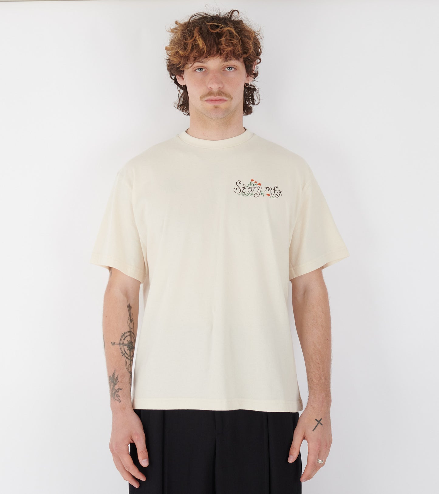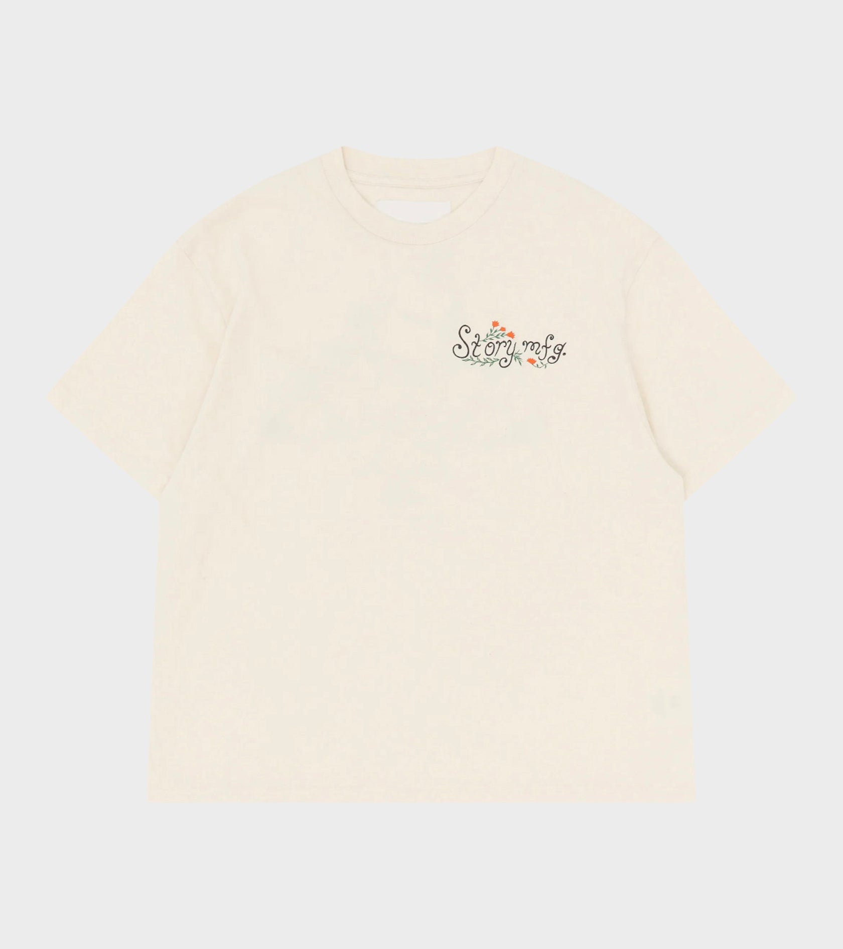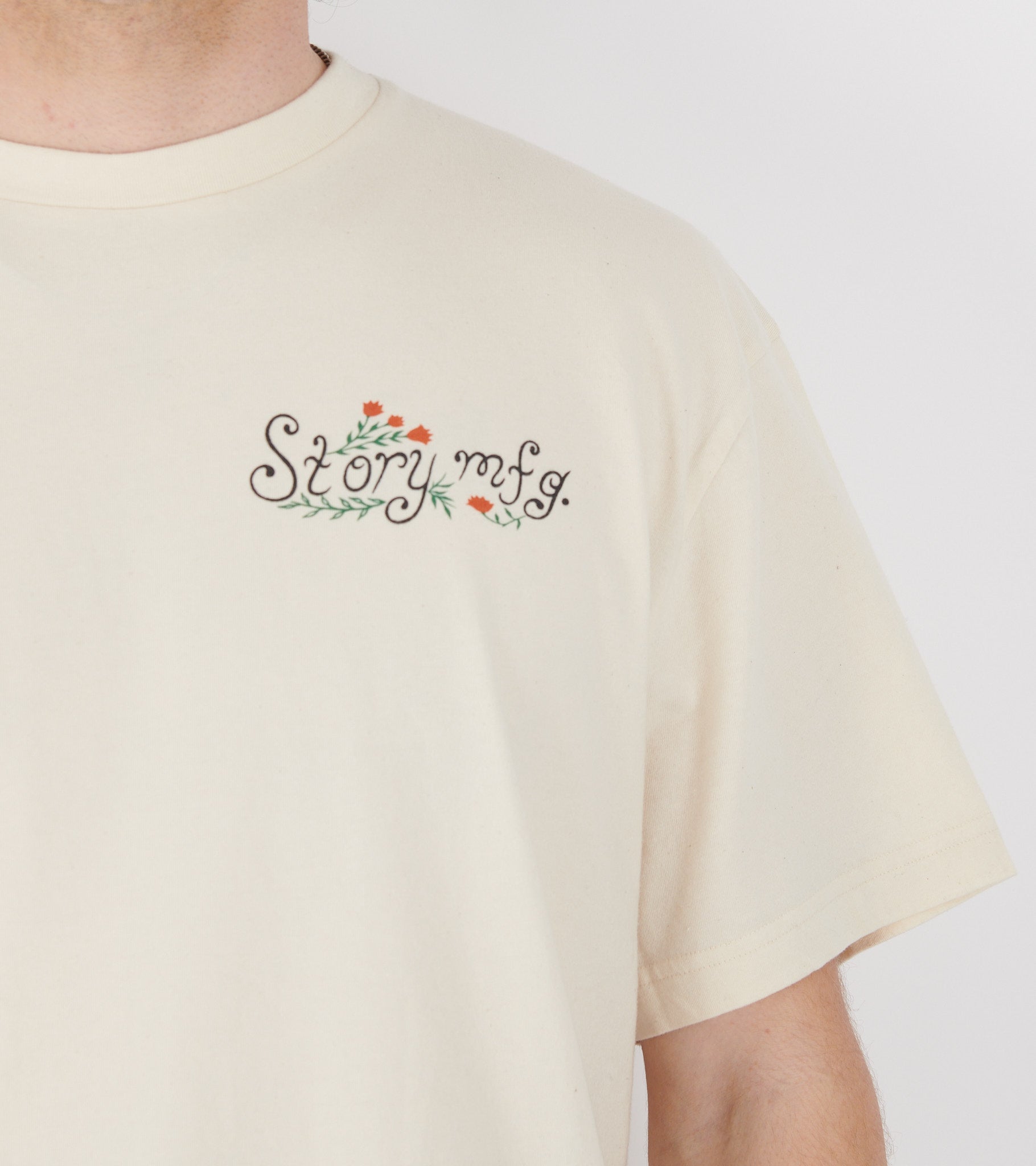 Råhvid t-shirt med logoprint fra Story mfg.