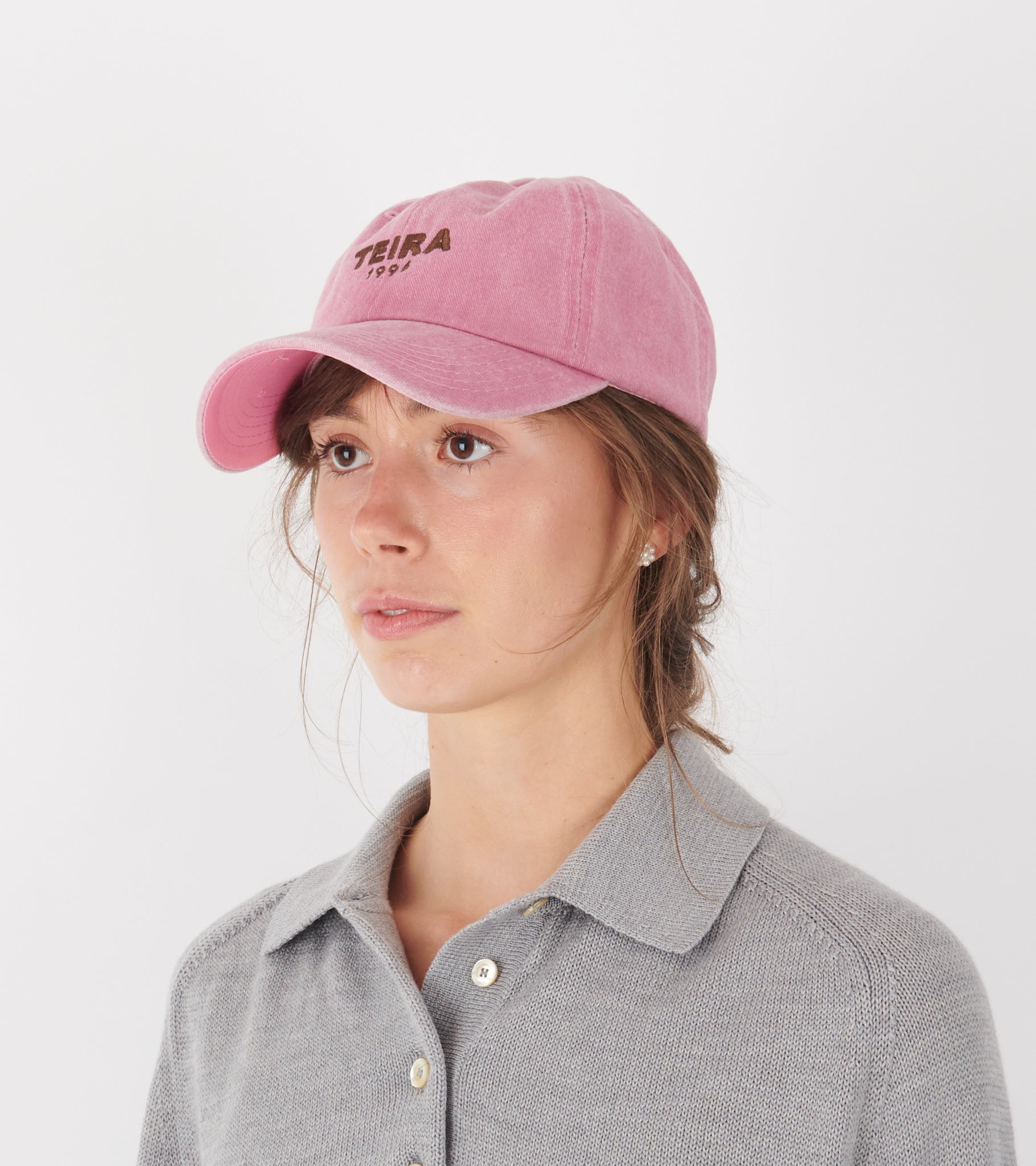Pink kasket i deadstock materiale og med 'vintage' look fra Teira. Denne kasket er one size og kan justeres i størrelsen med metal spænde.