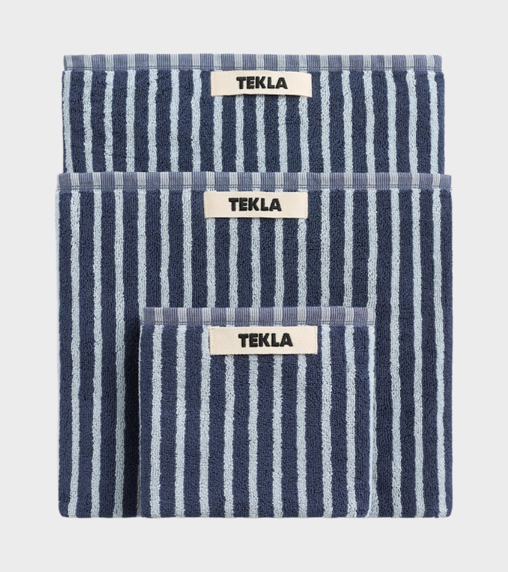 Gæstehåndklæde i farven 'River Stripes' fra Tekla. Håndklædet er lavet af 100% økologisk bomuld og er produceret i Portugal. Guest Towel måler 30x50 cm. Alle håndklæderne fra Tekla er fri for sundhedskadelige kemikalier.