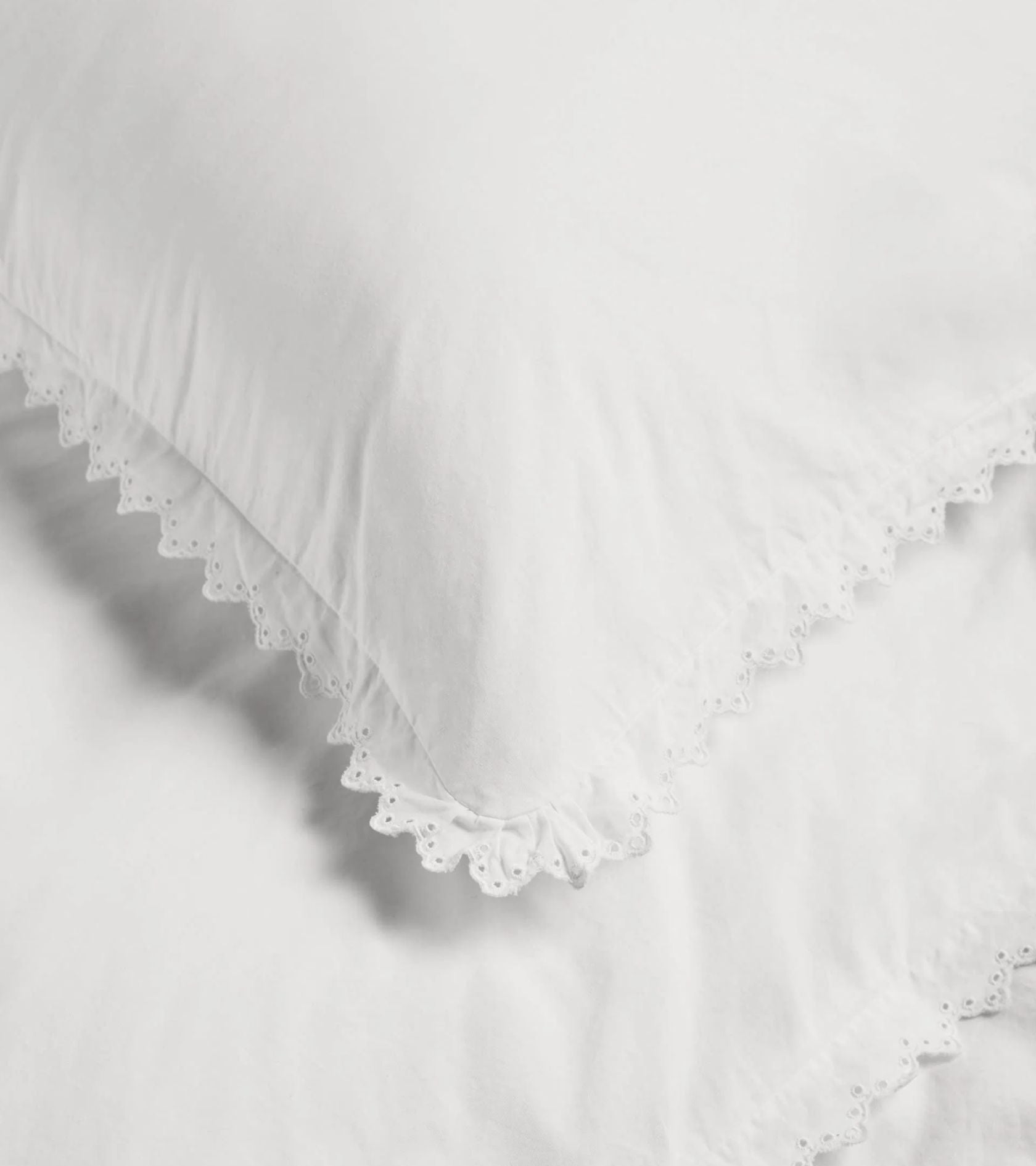 Pudebetræk med 'Broderie Anglaise' i farven 'Broken White' fra Tekla.