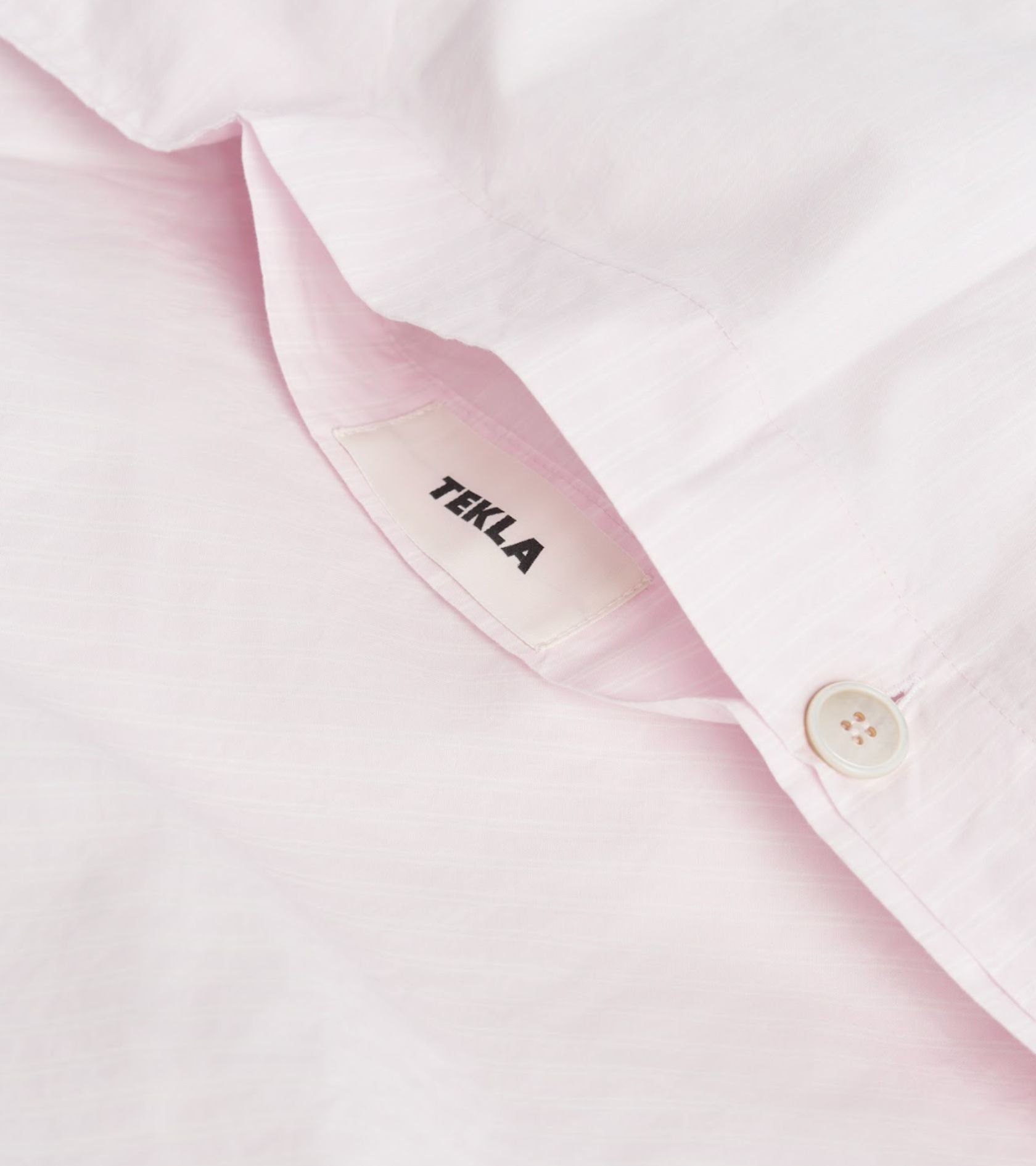 Dynebetræk i farven 'Pastel Stripes' fra Tekla. Betrækket er lavet af lange bomuldfibre med et højt antal tråde. Det høje antal tråde gør betrækket modstandsdygtigt og holdbart. Betrækket er blevet behandlet med en stenvask som giver en blød fornemmelse og et mat finish.